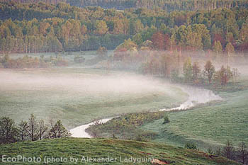 Morning mist above the river at Middle Russia