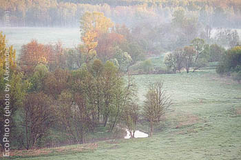 Утренний туман над рекой, весна, Средняя полоса России