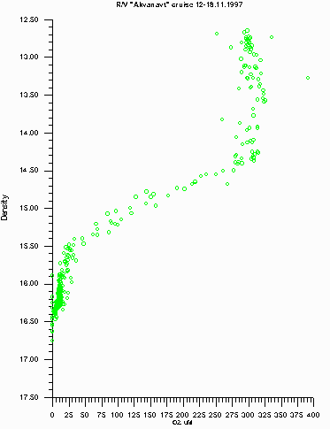 Dissolved oxygen, uM (Winkler titration, sampling without argon contamination)